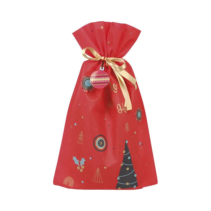 Geantă din polipropilenă „MOZAIC DE CRĂCIUN” verde/roșu cu panglică de satin auriu, 33,0 x 55,0 cm, SC096P